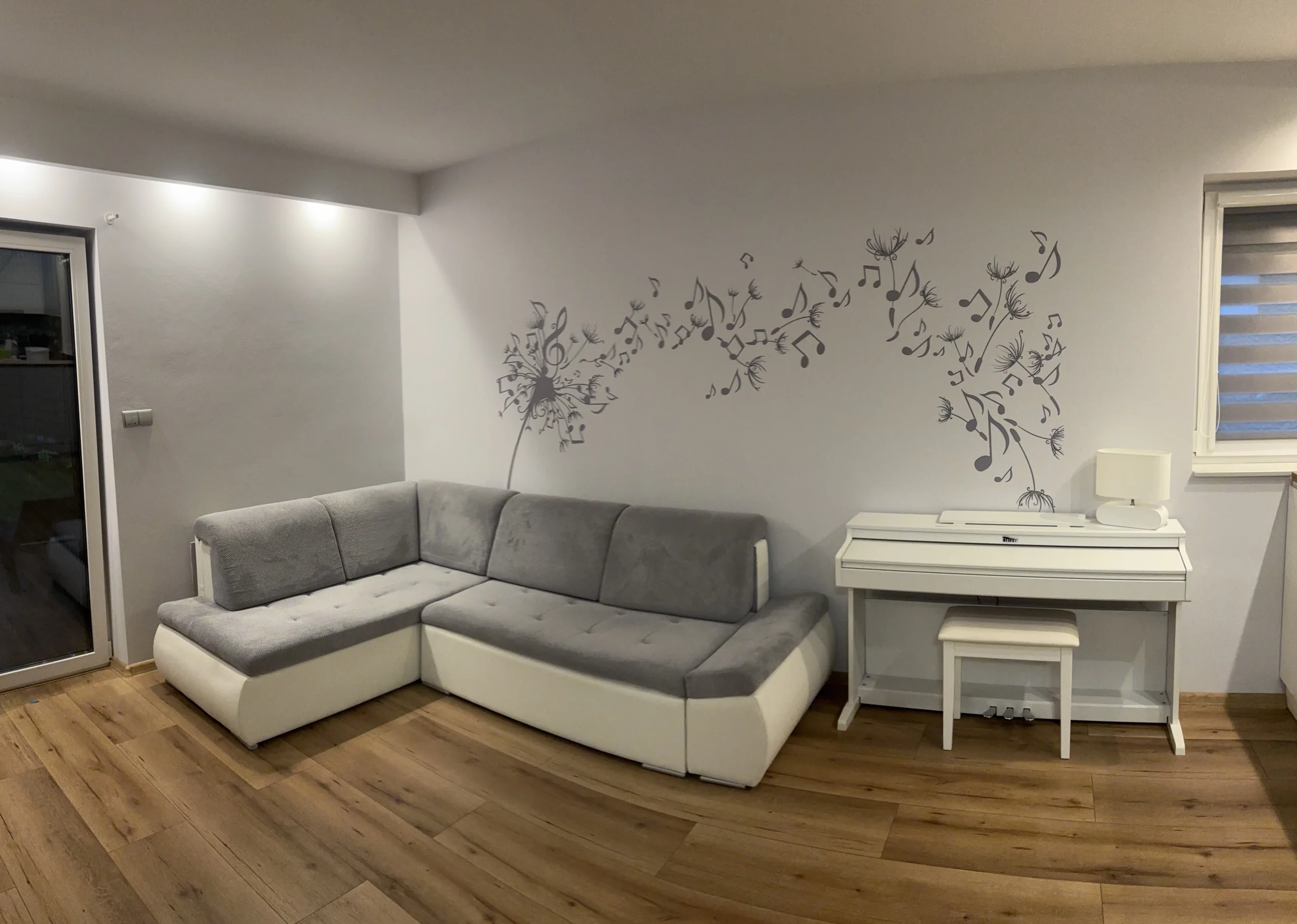 To autorska wizja Pani domu, która gra na pianinie i kocha dmuchawce. Efekt końcowy druku ściennego zachwycił zarówno właścicieli, jak i nasz zespół.