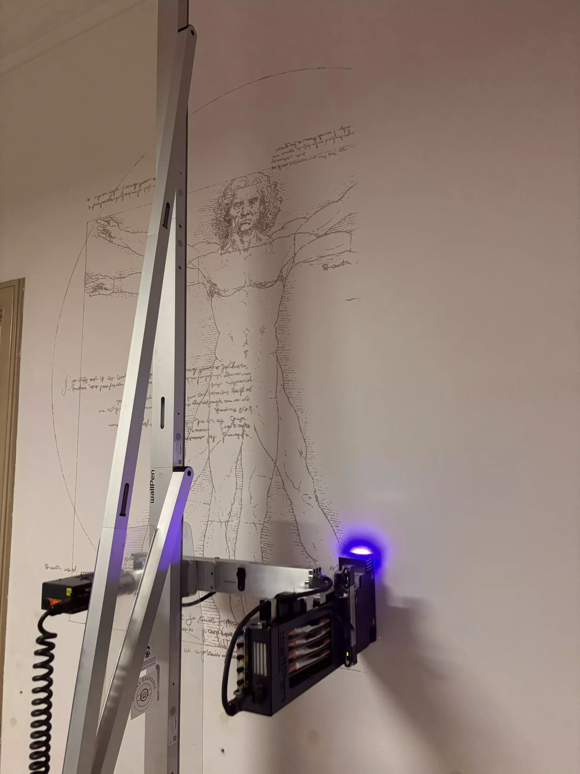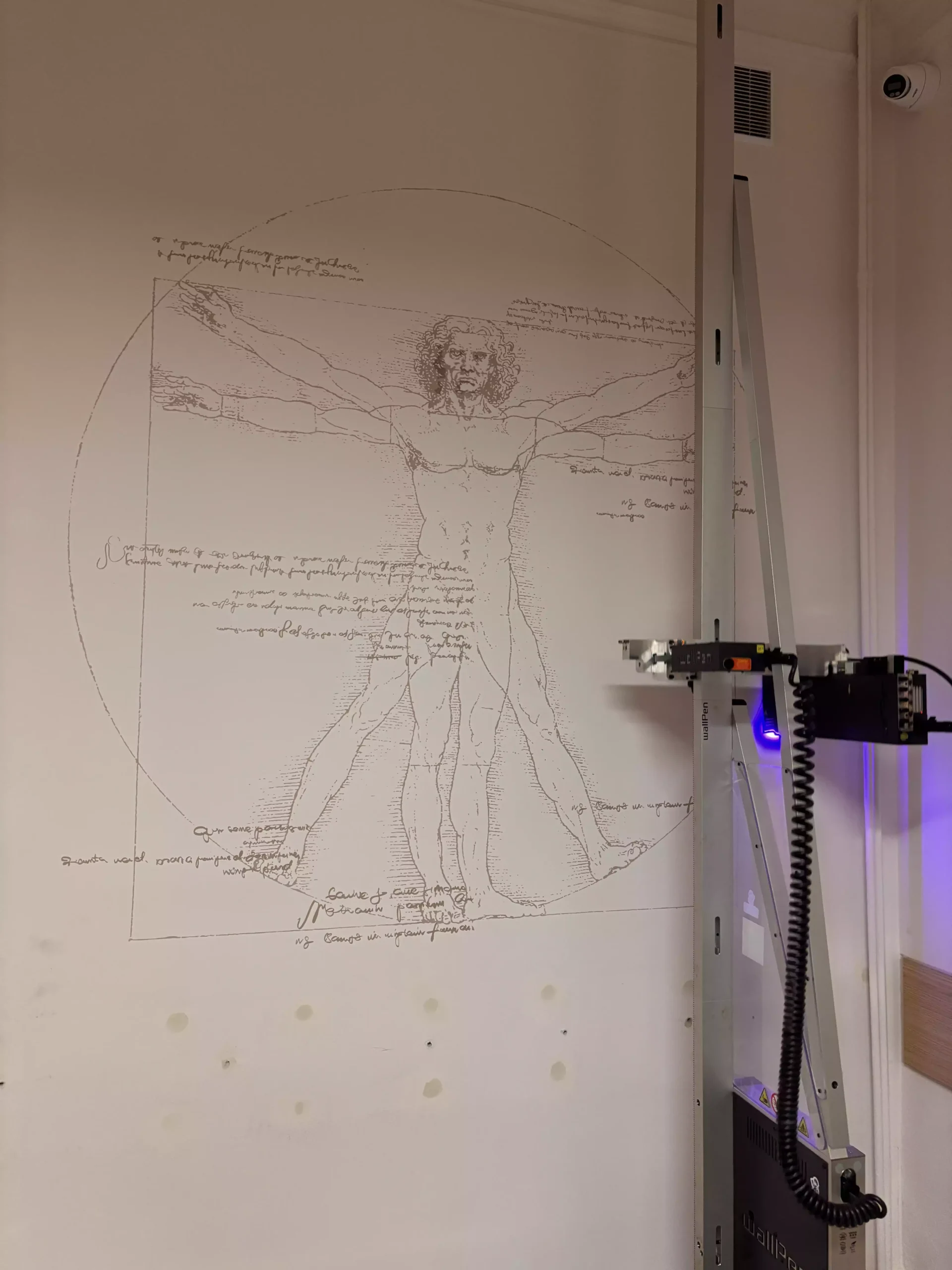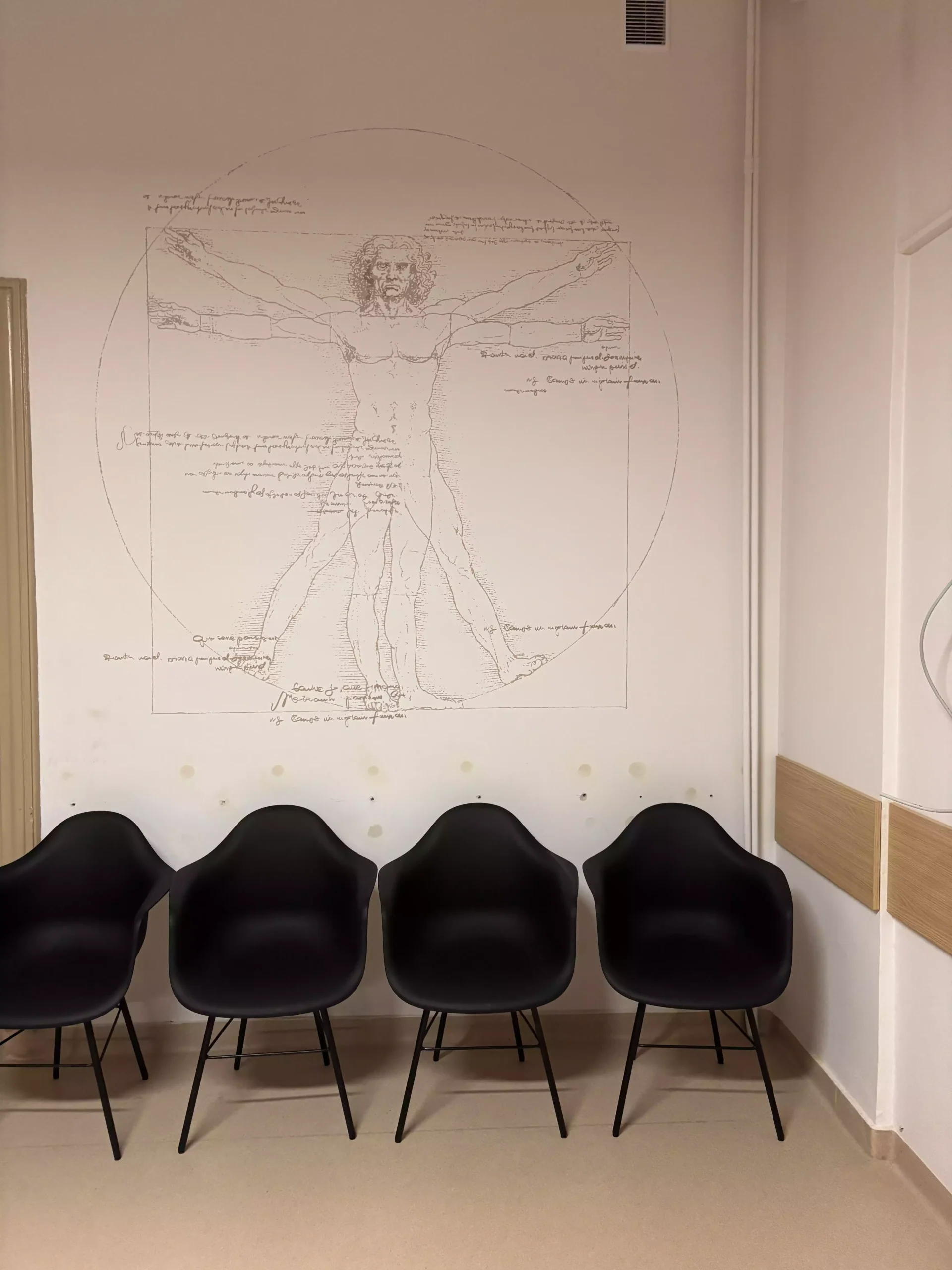 Grafika na ścianie Leonardo da Vinci przedstawia Człowieka witruwiańskiego. Rysunek przedstawia nagiego mężczyznę wpisanego w dwie geometryczne figury: koło i kwadrat.