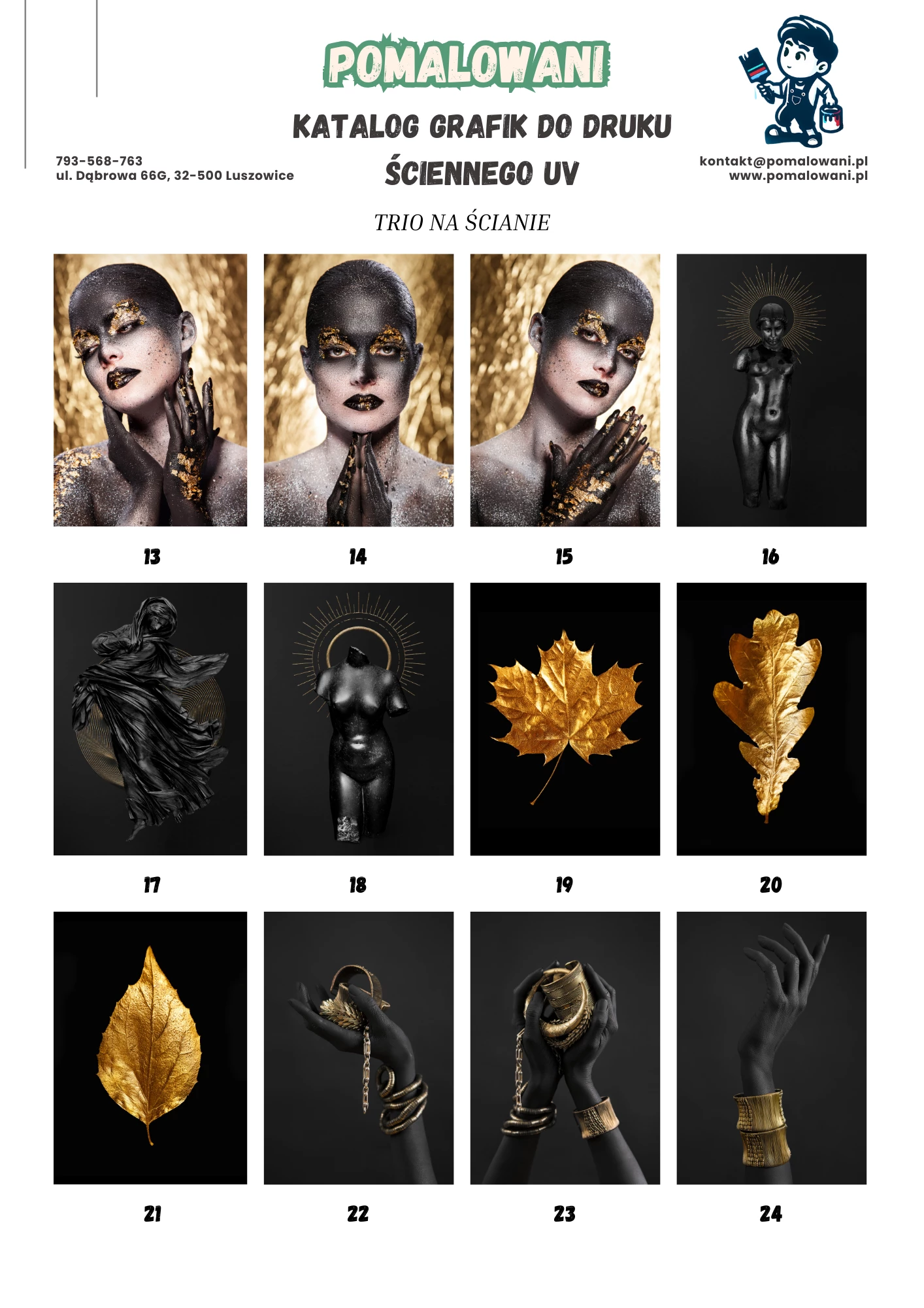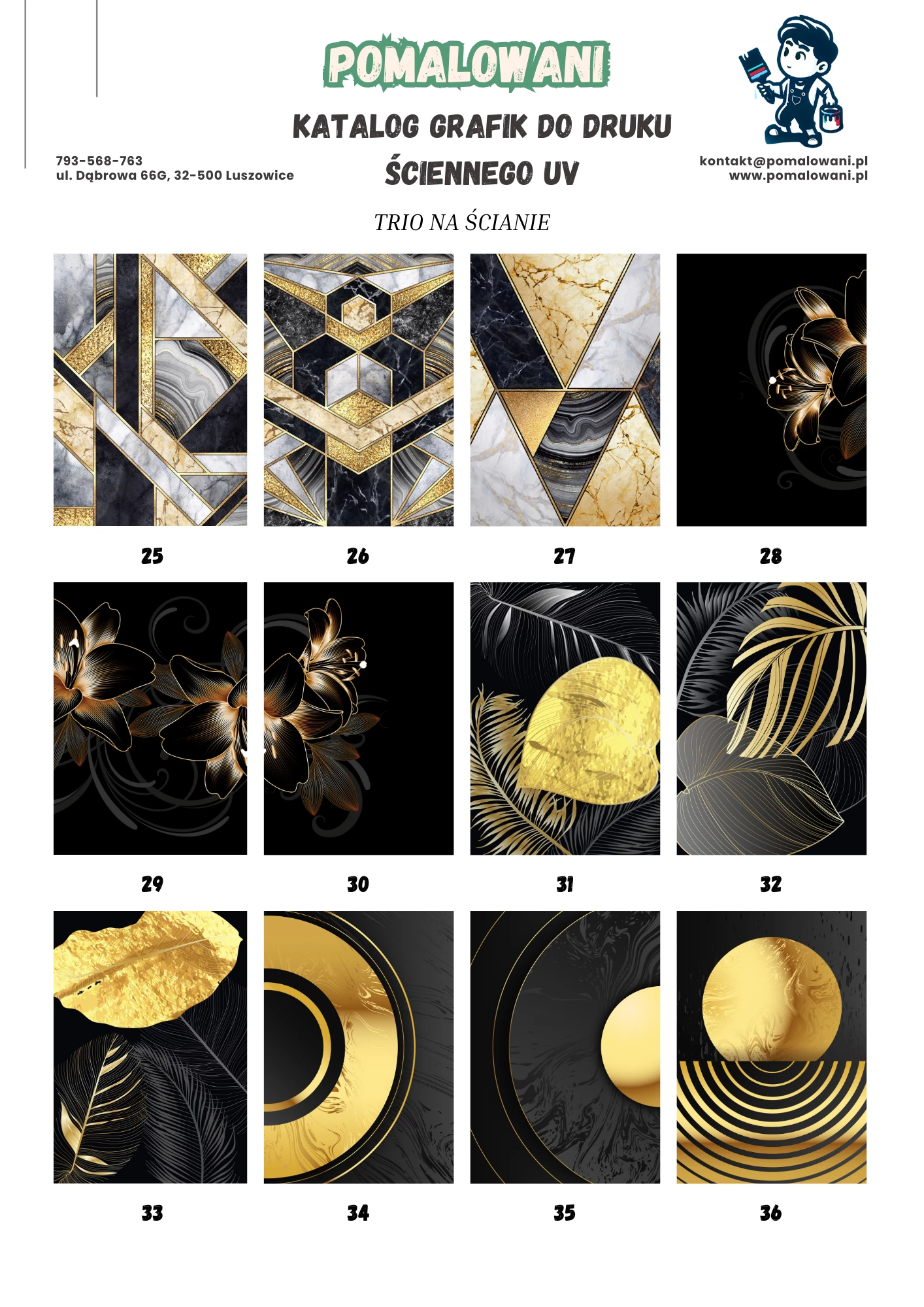 Złoto i czerń to ponadczasowe połączenie, które kojarzy się z klasą, siłą i równowagą. Nasze grafiki na zamówienie możesz dostosować pod względem rozmiaru, układu i stylu – tak, by idealnie pasowały do Twojej przestrzeni.