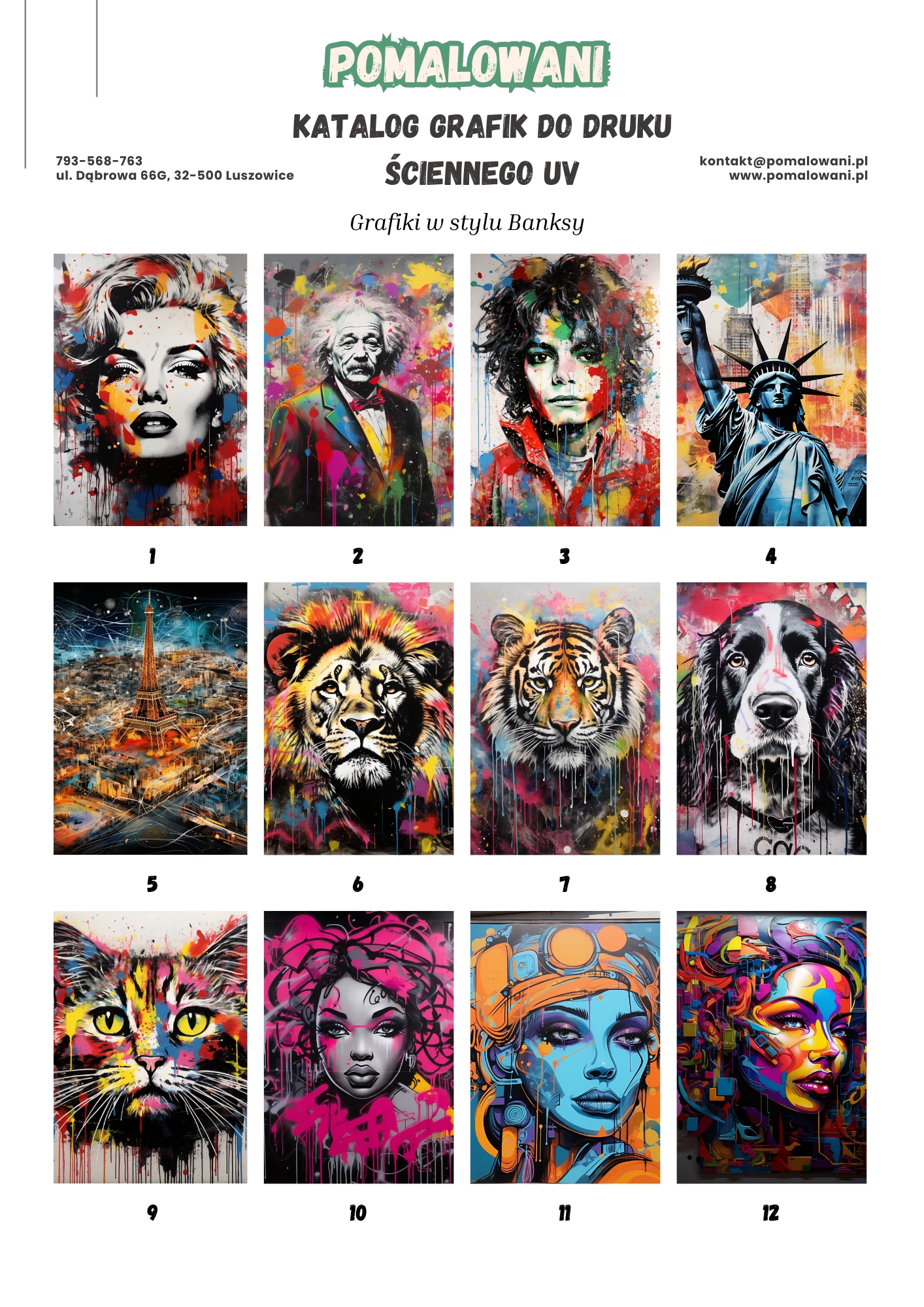 Grafiki w stylu Banksy’ego to odważna, pełna przekazu forma dekoracji, która świetnie sprawdza się w nowoczesnych wnętrzach. Dzięki drukowi ściennemu możesz nanieść bezpośrednio na ścianę wybraną kompozycję inspirowaną sztuką uliczną – od kultowych sylwetek po społeczne manifesty.